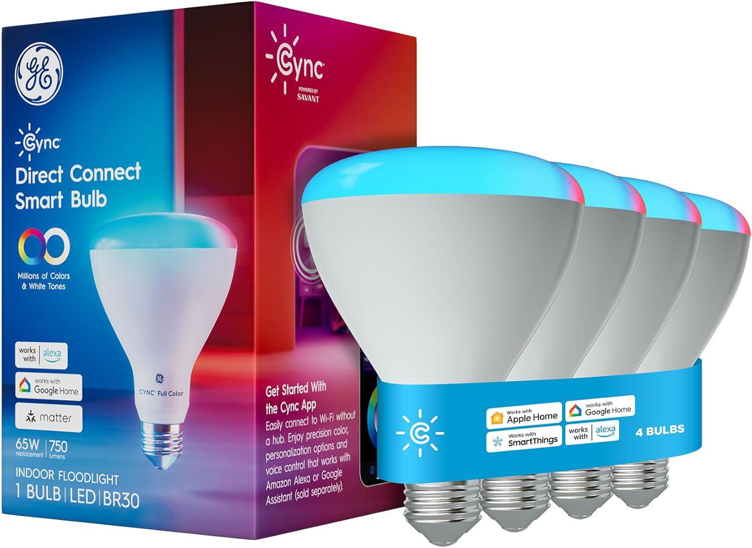Cync GE BR30 Smart Bulb WiFi LED Light Bulbs, Color Changing Indoor Floodlight, Bluetooth Light Bulb with Alexa & Google Assistant, 65W Full Color 2-Pack(Multicolor Works With Matter)