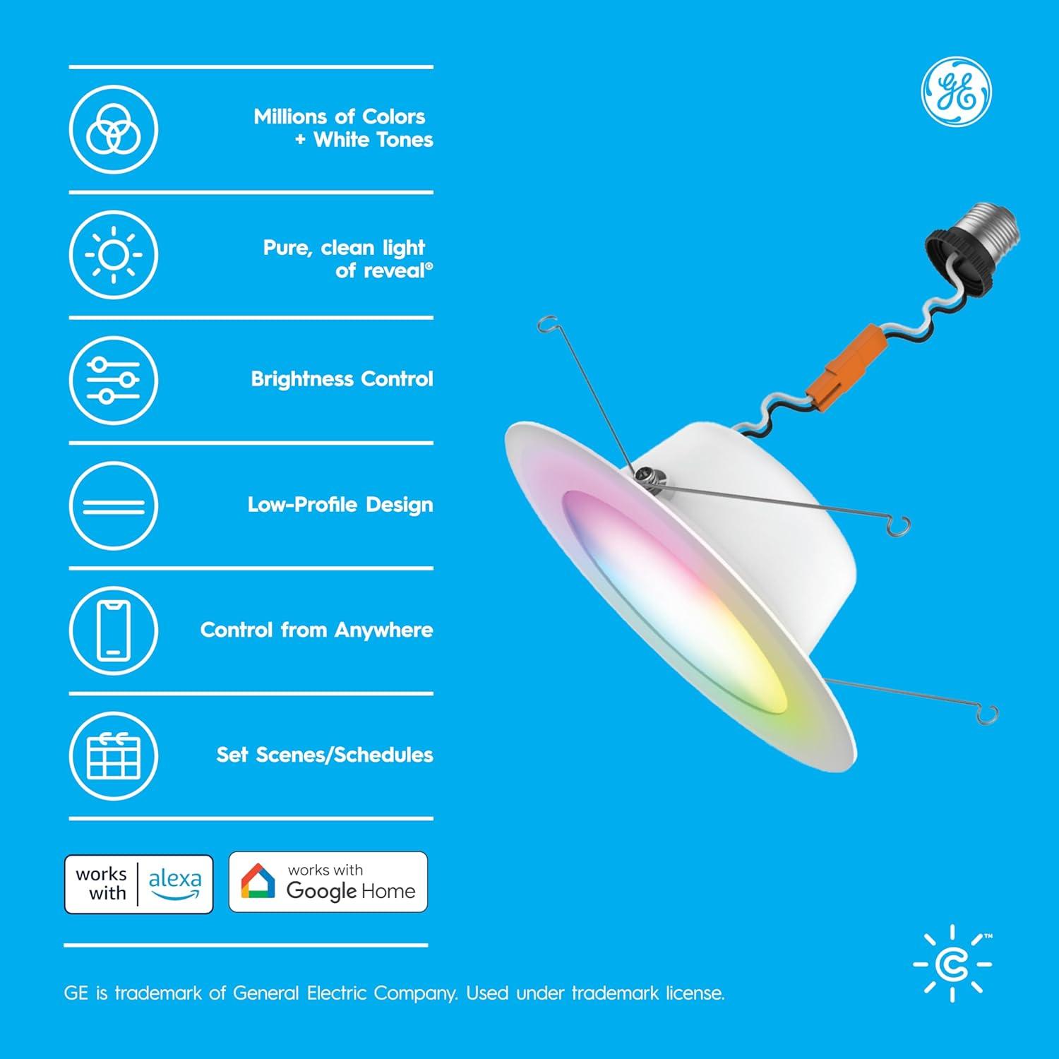Cync GE Reveal Smart LED Recessed Downlight, Color Changing WiFi Light, Matter Compatible, Compatible with Alexa and Google Home, 6in, 2-Pack(Recessed)
