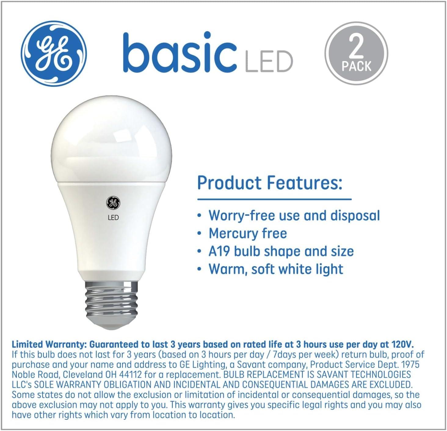 GE Basic LED Light Bulbs, 100 Watt, Soft White, A19, Medium Base (2 Pack)(2 Count (Pack of 6))