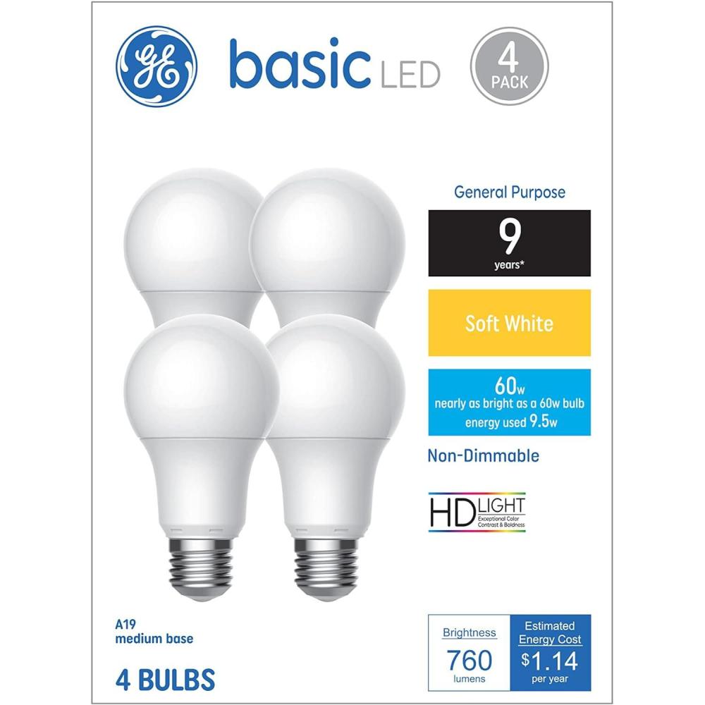 GE Basic Light Bulbs, 60 Watt, Soft White, A19 (4 Pack)(Soft White)