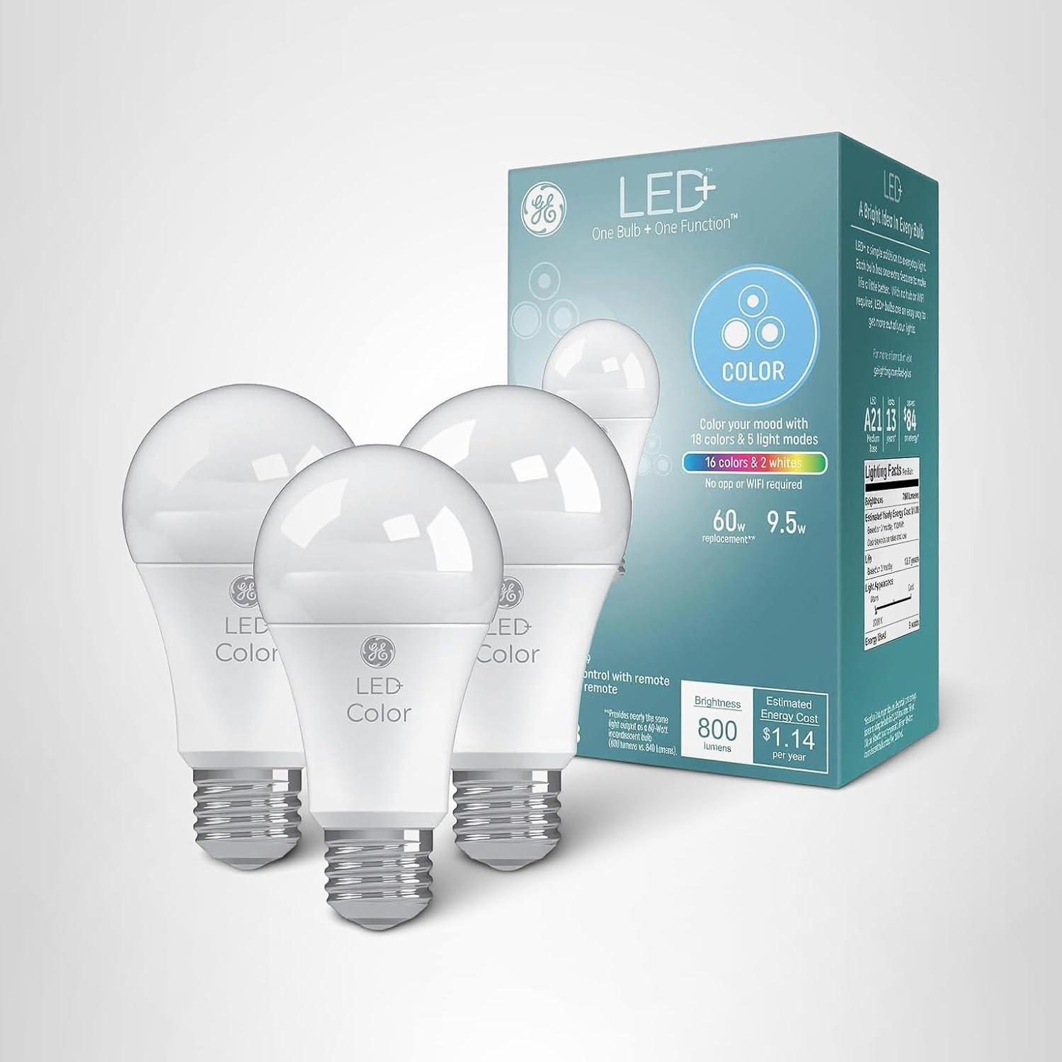 GE LED+ Color Changing LED Light Bulbs with Remote, 9.5W, No App or Wi-Fi Required, A19 (3 Pack)(3 Bulbs)