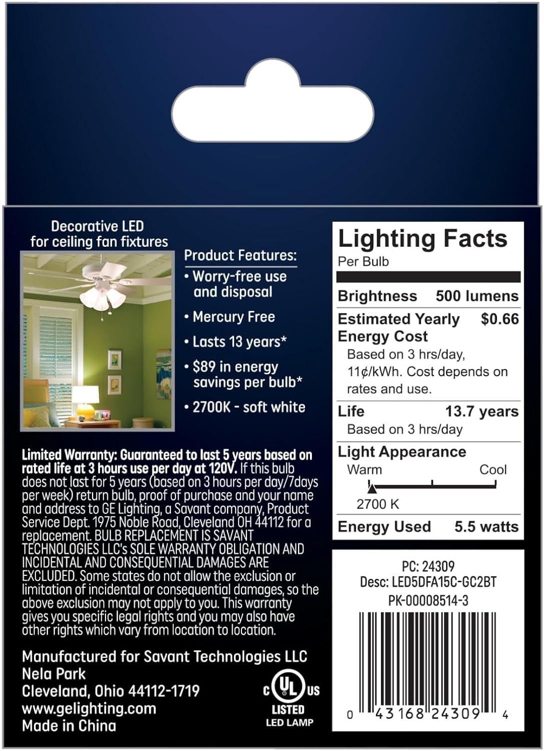 GE LED Light Bulbs, 60 Watt, Soft White, A15 Ceiling Fan Bulbs, Clear, Small Base (12 Pack)(Clear)