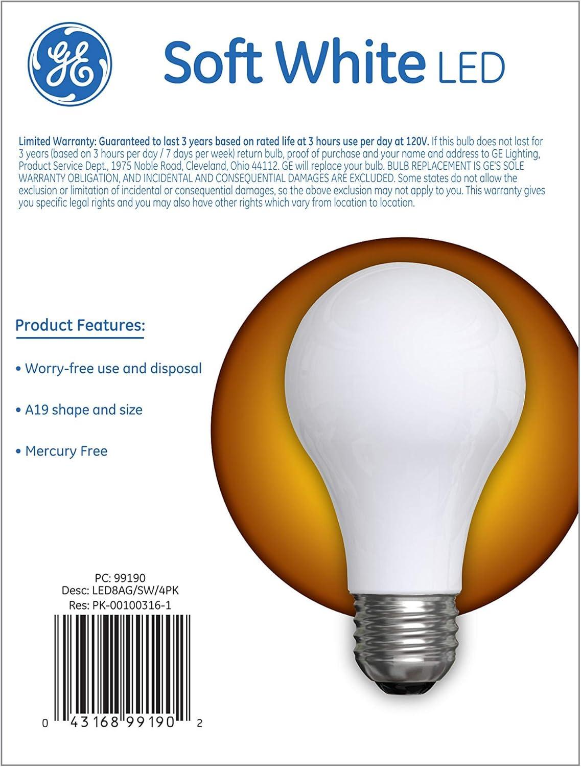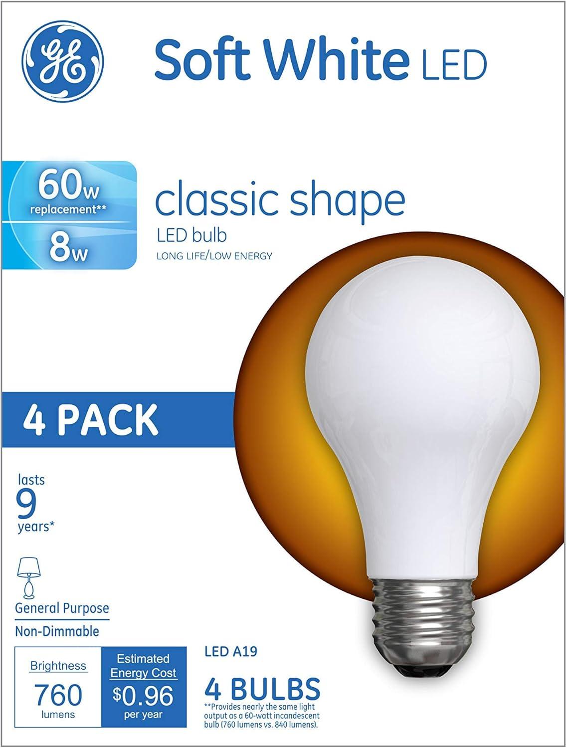 GE LED Light Bulbs, 60 Watt, Soft White, A19 (4 Pack)(4 Count (Pack of 1))
