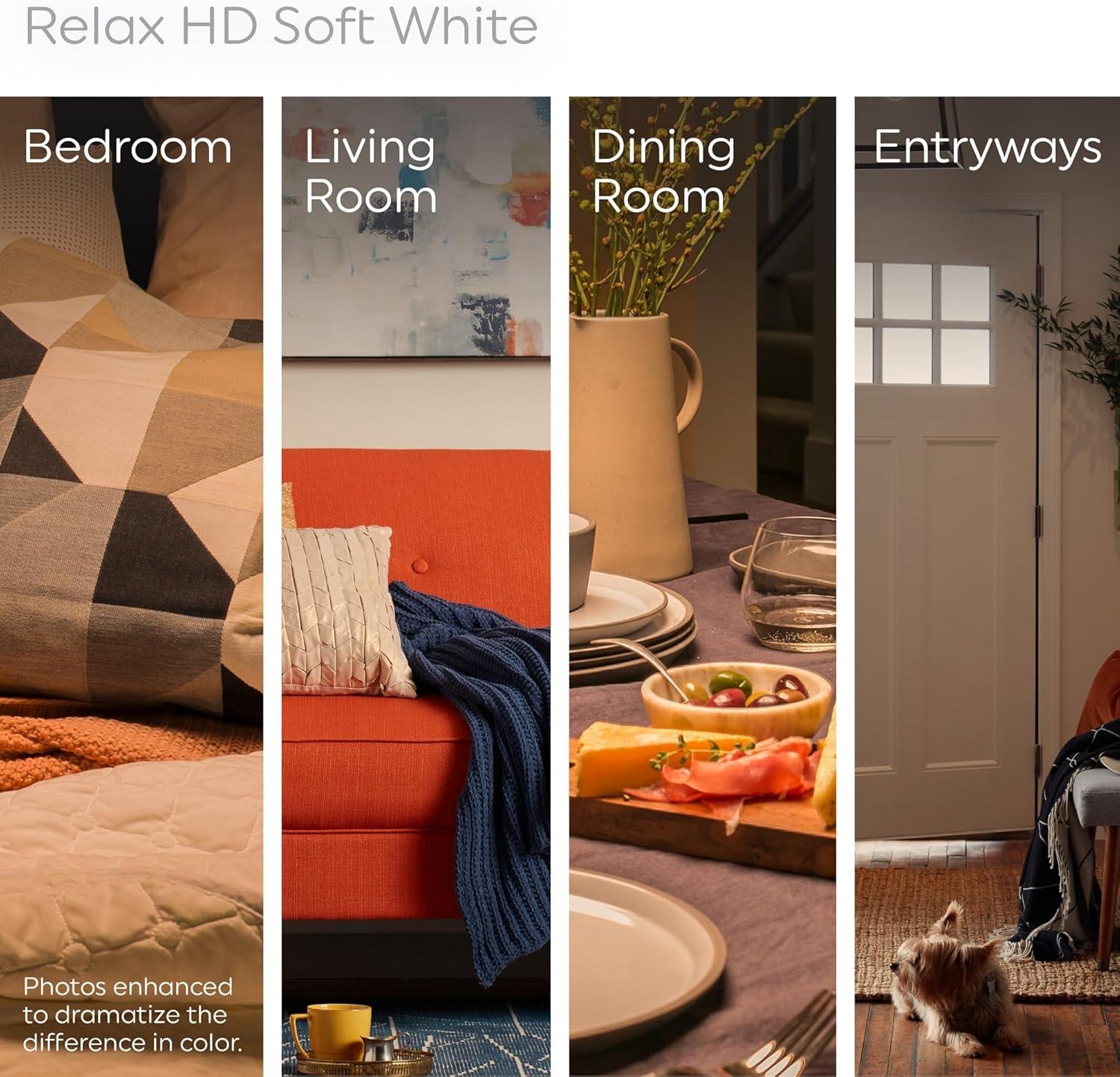 The GE Relax HD Soft White Light Bulbs are improved, energy-saving LED bulbs that enhance home décor and the appearance of colors. Experience the difference with bolder colors and enhanced contrast vs standard LED white light bulbs. Dim the lights and set the right mood for any occasion with these dimmable light bulbs. Our high-definition light bulbs offer a warm, soft white light that is perfect for comfortable moments and cozy spaces. We recommend these HD bulbs for use in spaces like bedrooms, family rooms, dining rooms, and entryways. These energy-efficient soft white bulbs replace 45-Watt bulbs and are rated to last up to 13.7 years based on 3 hours of daily use, saving you money for years to come.