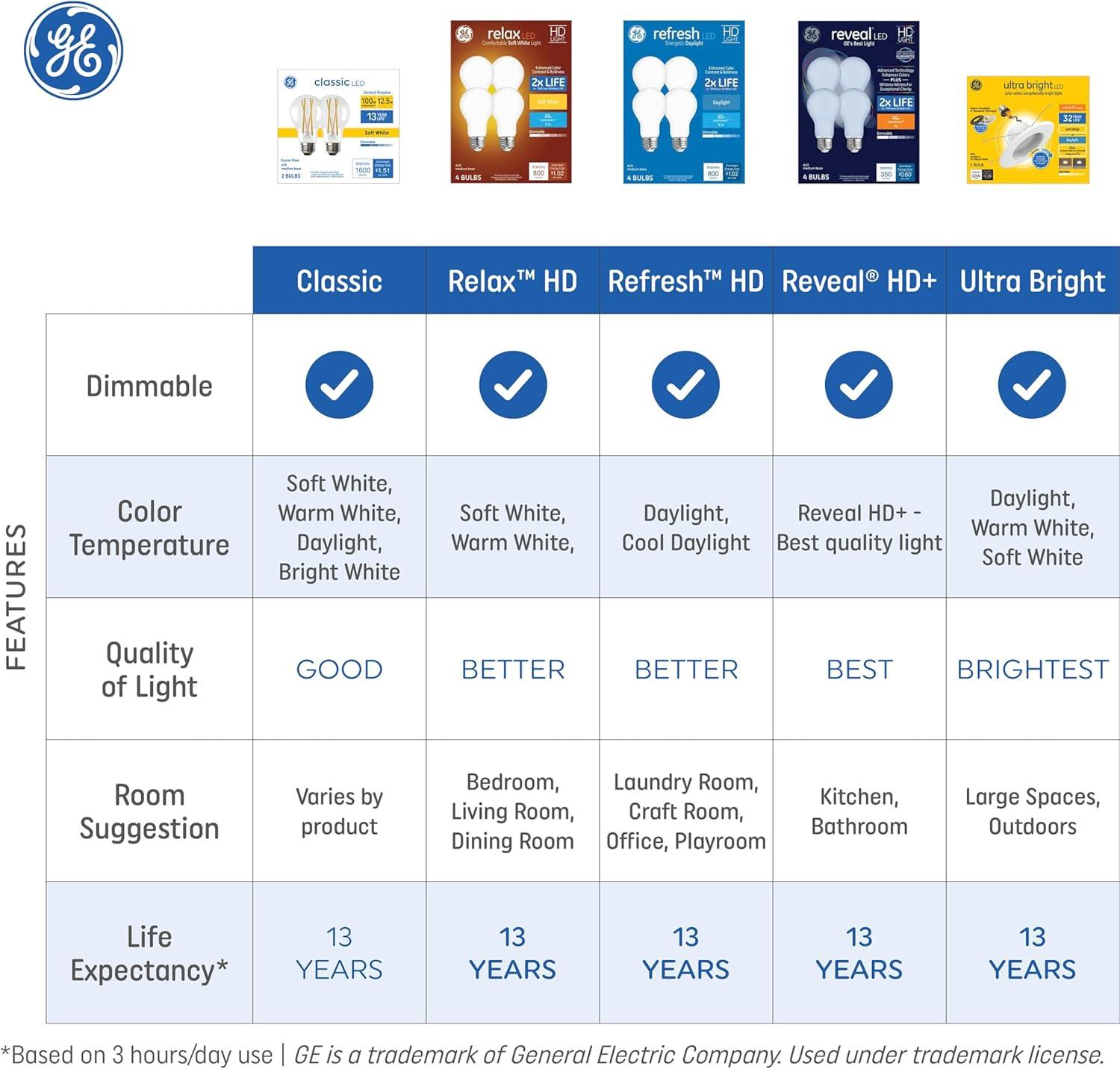 Replacement Soft White Bulbs: Make your home more energy efficient with our soft white LED light bulbs; Relax HD Light Bulbs offer a warm, soft white light that is perfect for comfortable moments and cozy spaces