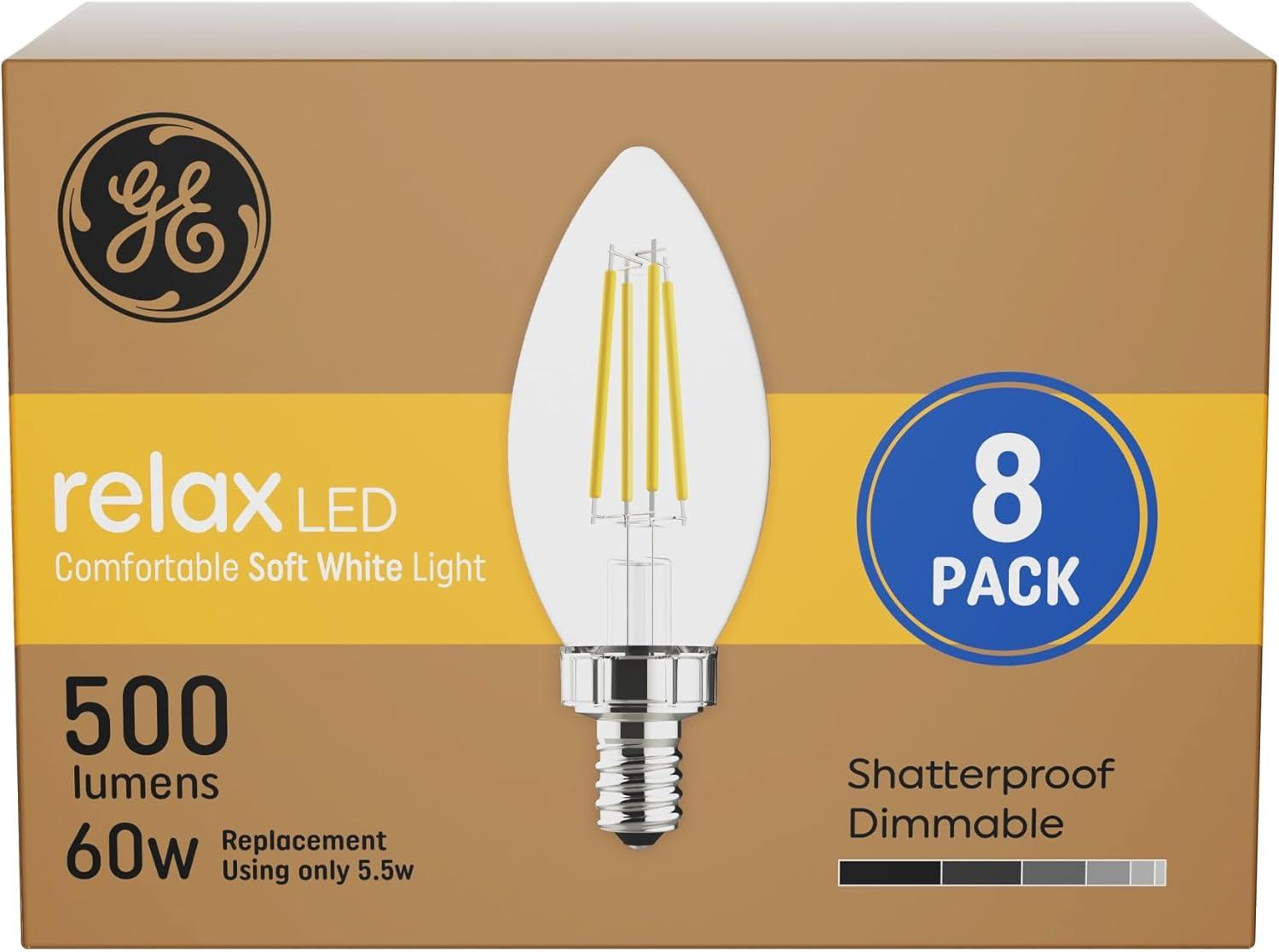 Be the first to review “GE Relax LED Light Bulbs, 60 Watt, Soft White, Decorative Bulbs, Clear, Small Base (8 Pack)(B11)”