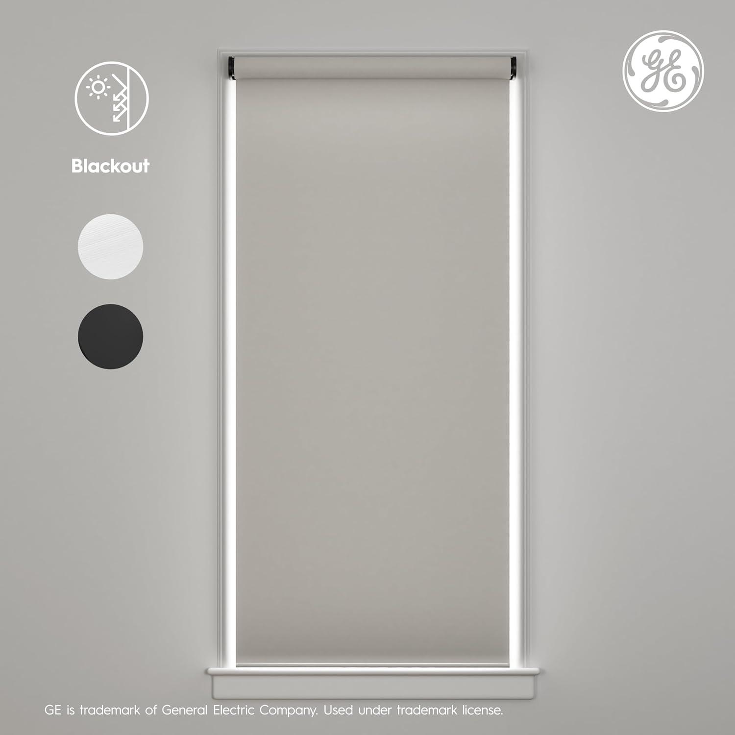 GE Smart Shade, Motorized Window Blind with Matter & Remote Control, Easy Install, Black Hardware, Blackout Grey Fabric, Quiet Operation, 38-in Width, Adjustable Length, 1 Shade(Blackout White)