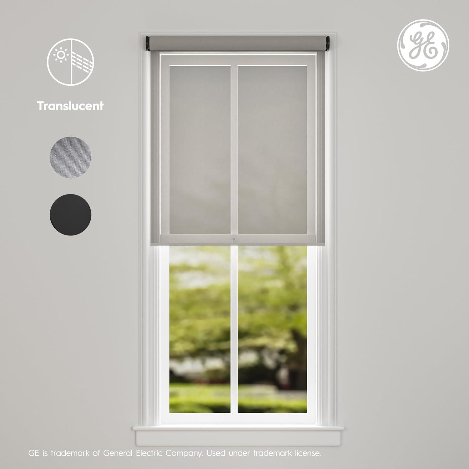 GE Smart Shade, Motorized Window Blind with Matter & Remote Control, Easy Install, Black Hardware, Blackout Grey Fabric, Quiet Operation, 38-in Width, Adjustable Length, 1 Shade(Translucent Grey)