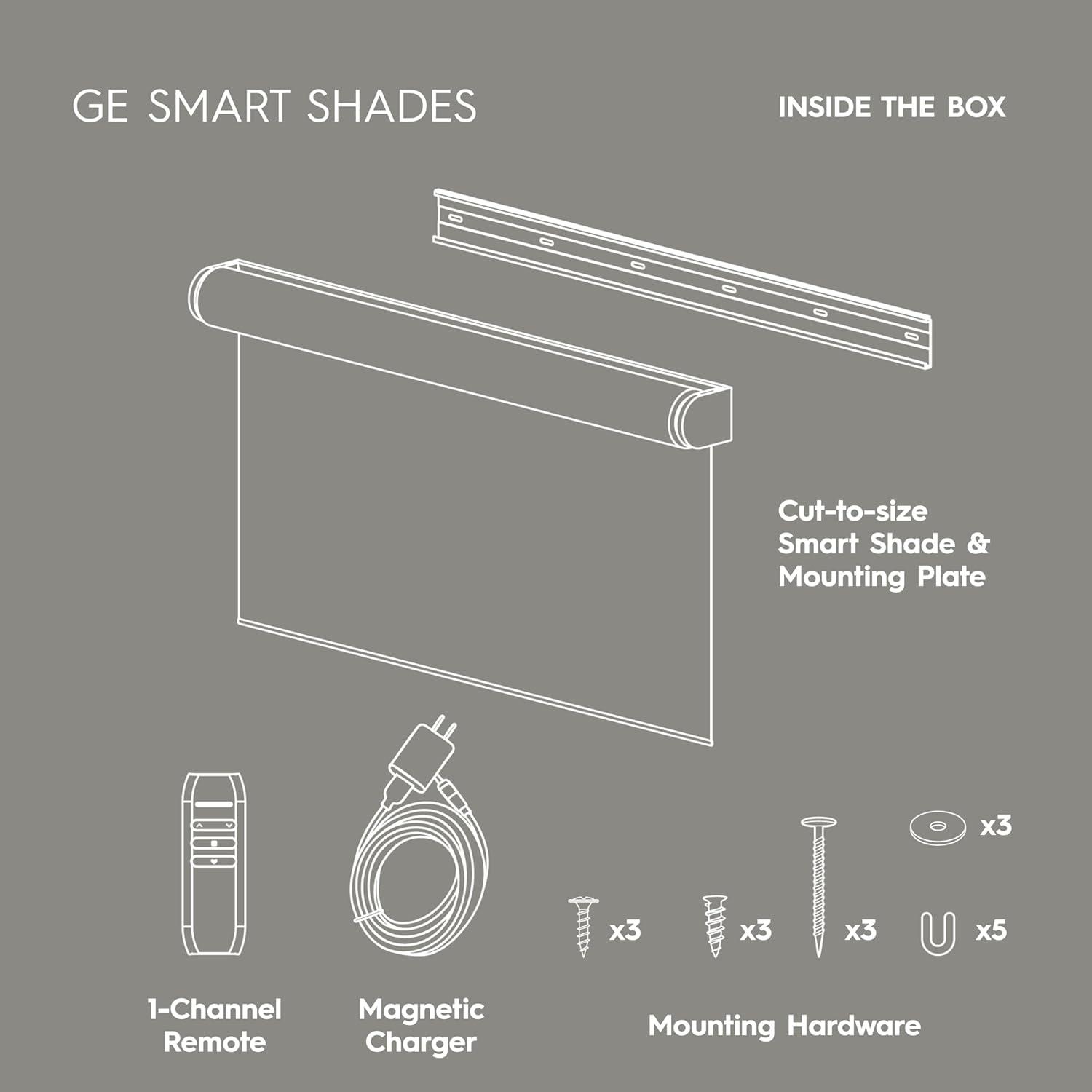 Upgrade your home with GE Smart Shades, the modern motorized window treatment that blends effortless automation with elevated design. Engineered with a patented, easy to install, system and no visible hardware. These shades deliver a clean, tailored look that complements any space. Choose from blackout or light-filtering fabrics in sleek white or gray finishes, all framed in durable aluminum trim that’s built to last. Enjoy quiet, smooth operation and total control with Matter compatibility to easily connect directly to leading smart home devices (sold separately) and apps for hands-free voice control or use the included remote. Set personalized schedules to open and close automatically throughout the day, creating comfort, privacy, and energy efficiency on your terms. With their long-lasting durability and premium craftsmanship, GE Smart Shades bring the perfect blend of innovation and sophistication to your bedroom, living room, or office.