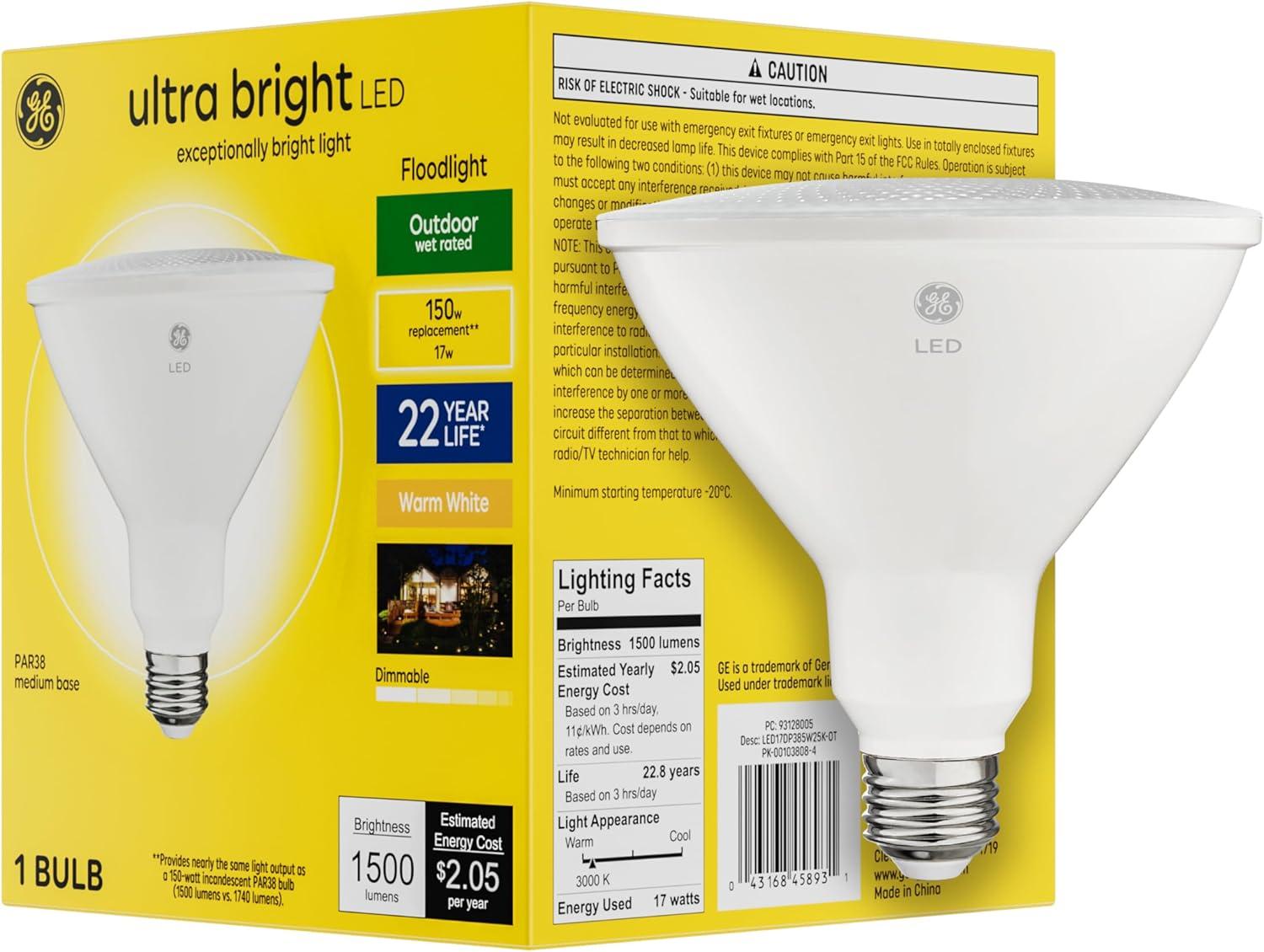 GE Ultra Bright LED Light Bulbs, 250 Watt, Daylight, PAR38 Floodlights(Warm White)